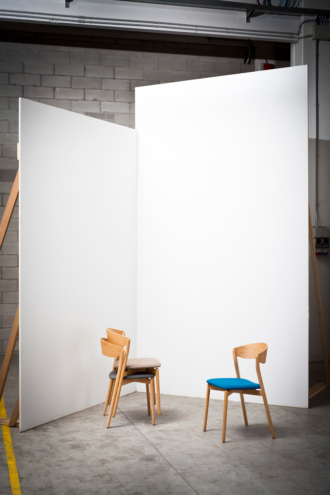 The materials used range from solid wood to sheet steel, glass and aluminum, using environment compatible materials.